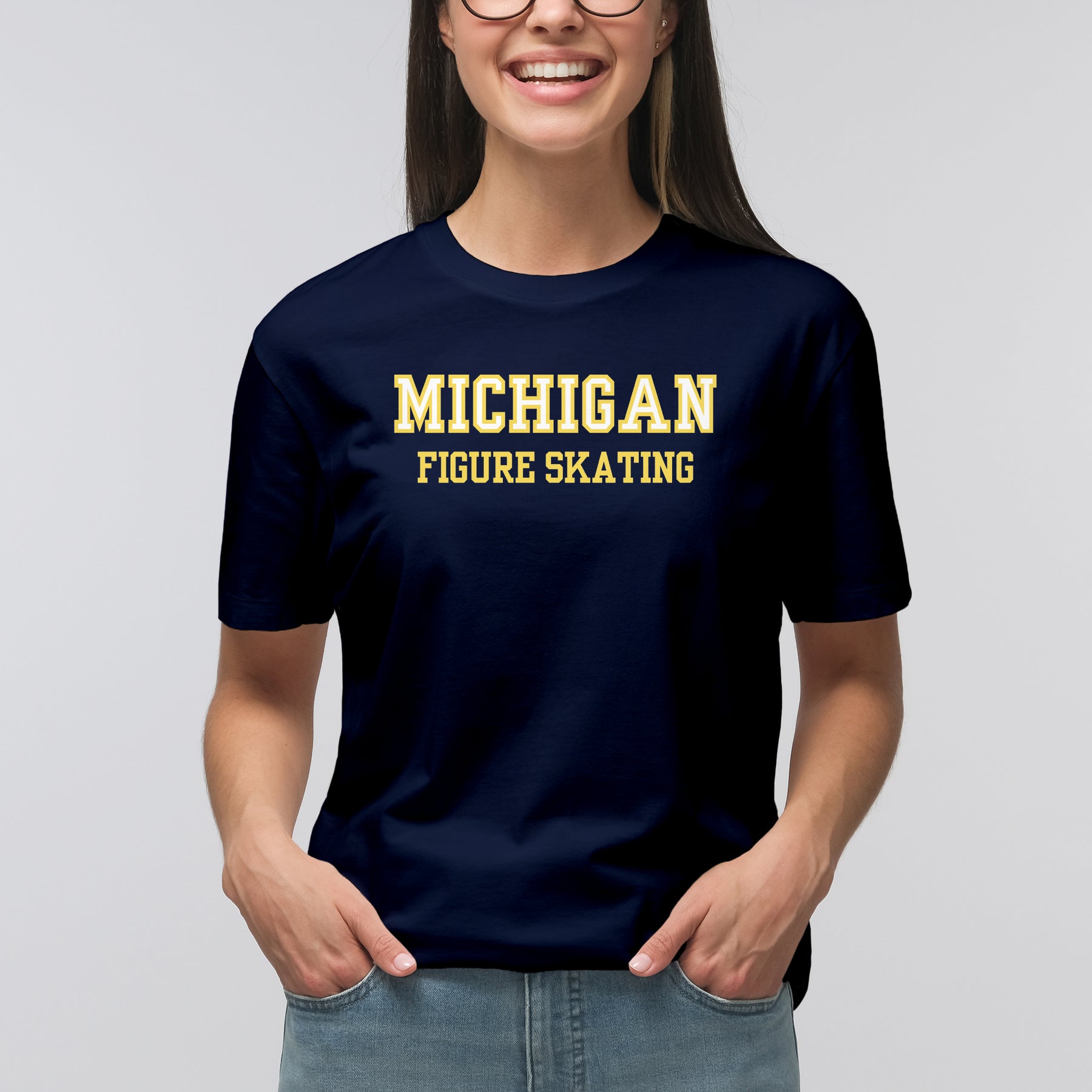 Michigan Figure Skating Maize Block T-Shirt - Navy