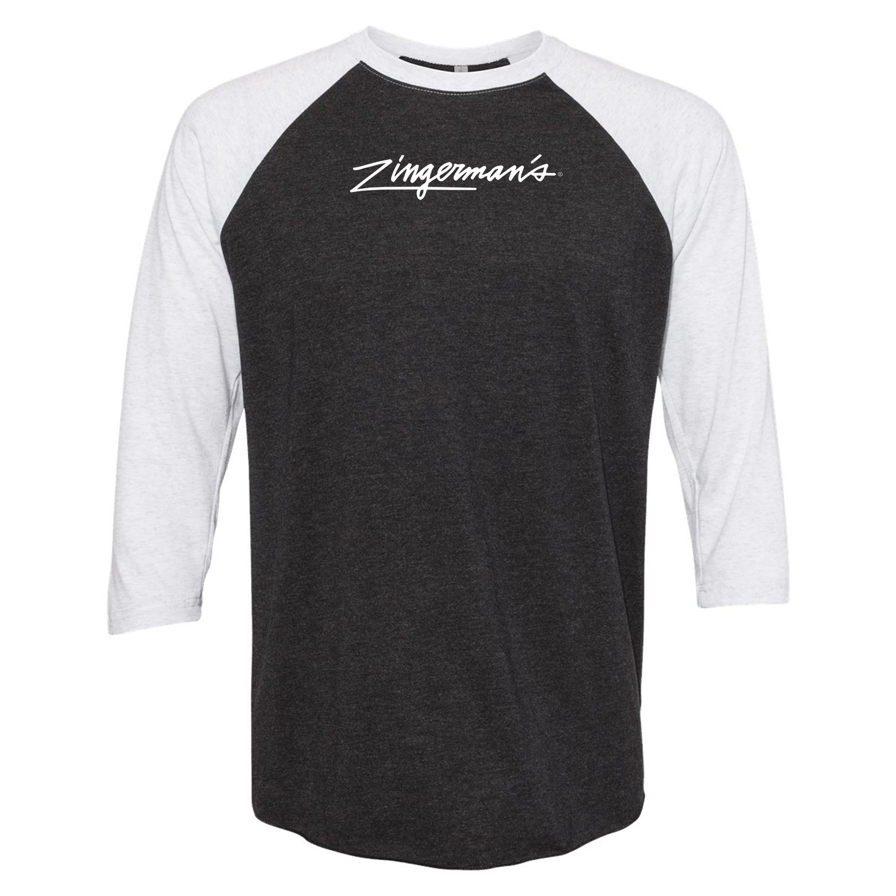 TEST Zingerman's Script - Triblend 3/4 Sleeve Raglan - Vintage Black/Heather White Sleeves