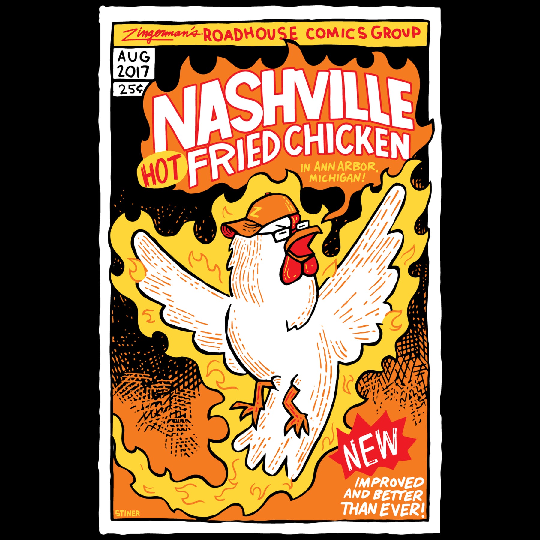 Zingerman's Roadhouse Nashville Hot Fried Chicken Soft Style T-Shirt- Black