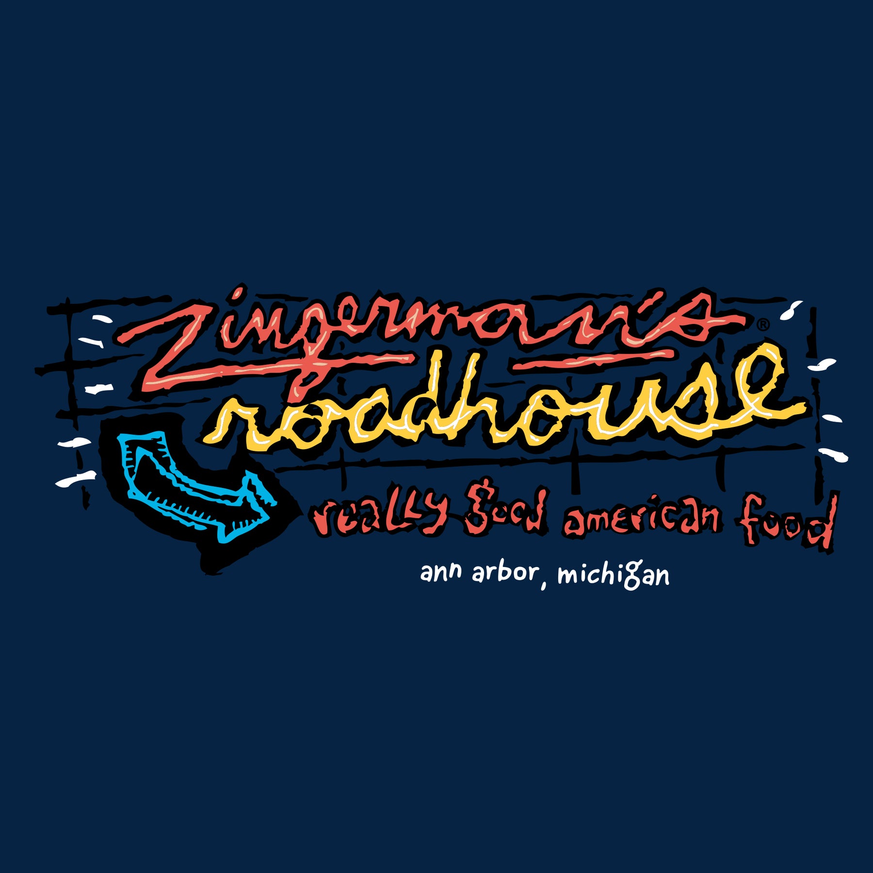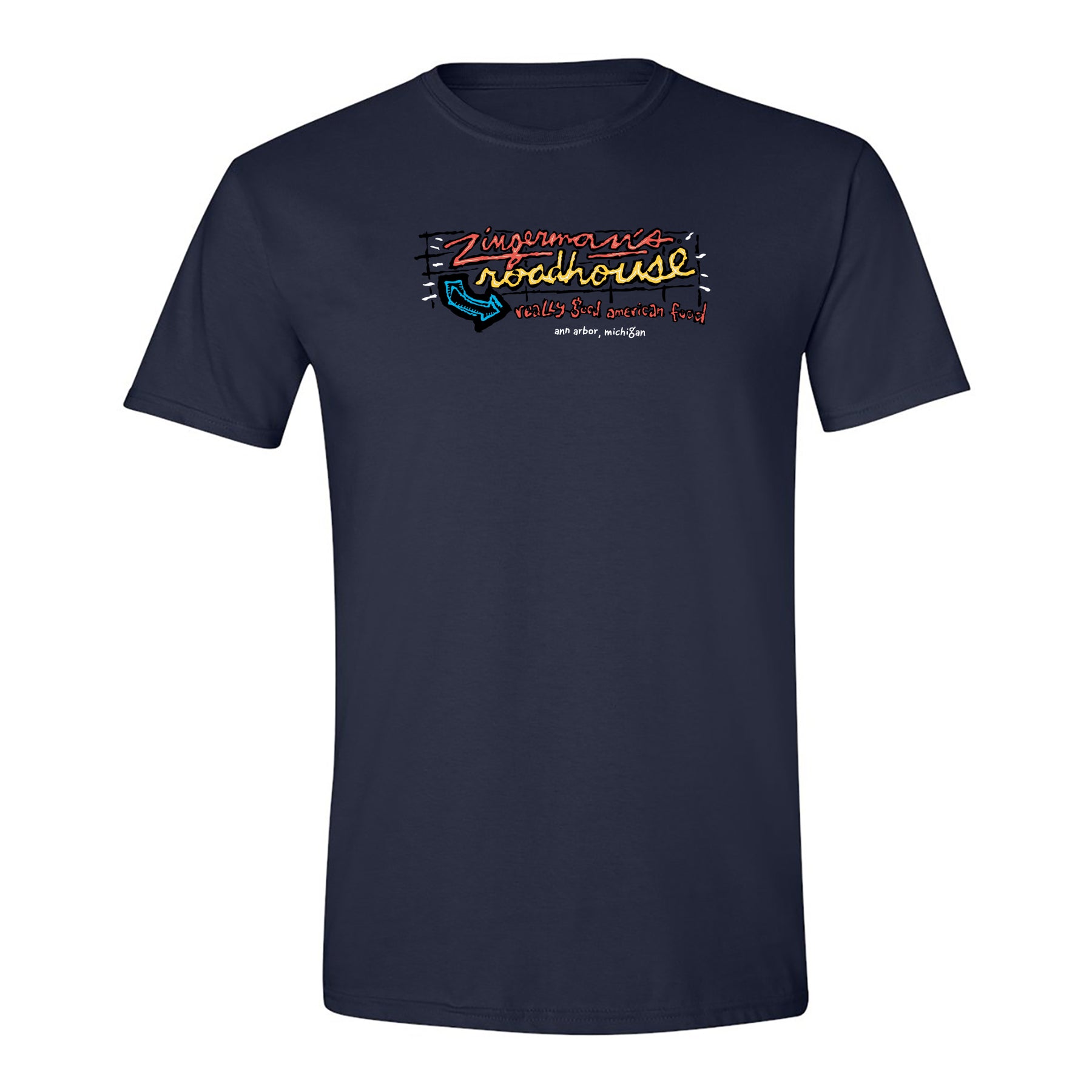 Zingerman's Roadhouse Neon Sign Soft Style T-Shirt- Navy